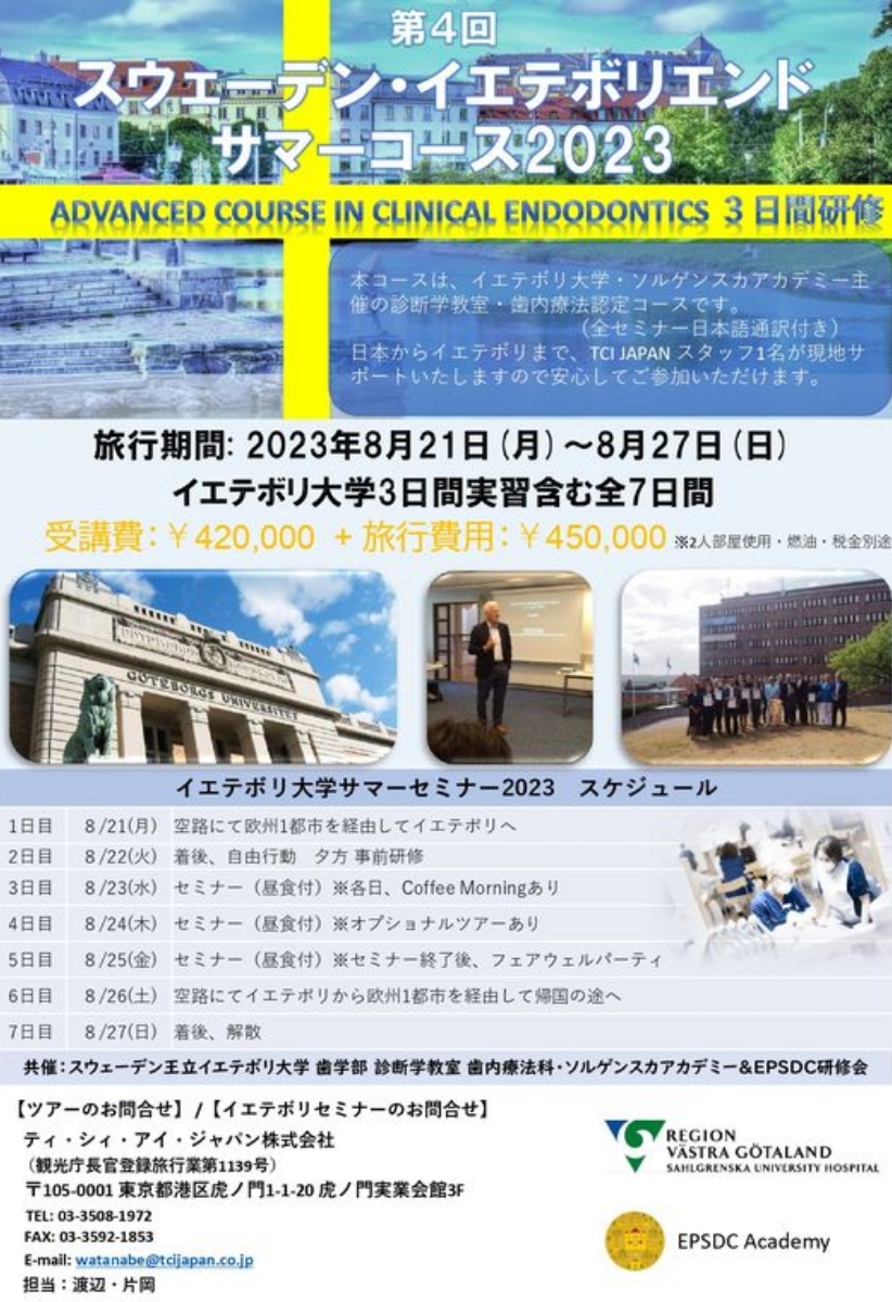 イエテボリ大学で学ぶスカンジナビア式の診査診断学、歯周病学、歯内療法学と、歯科治療における最も基礎となる重要な分野をトータルで習得することができます。